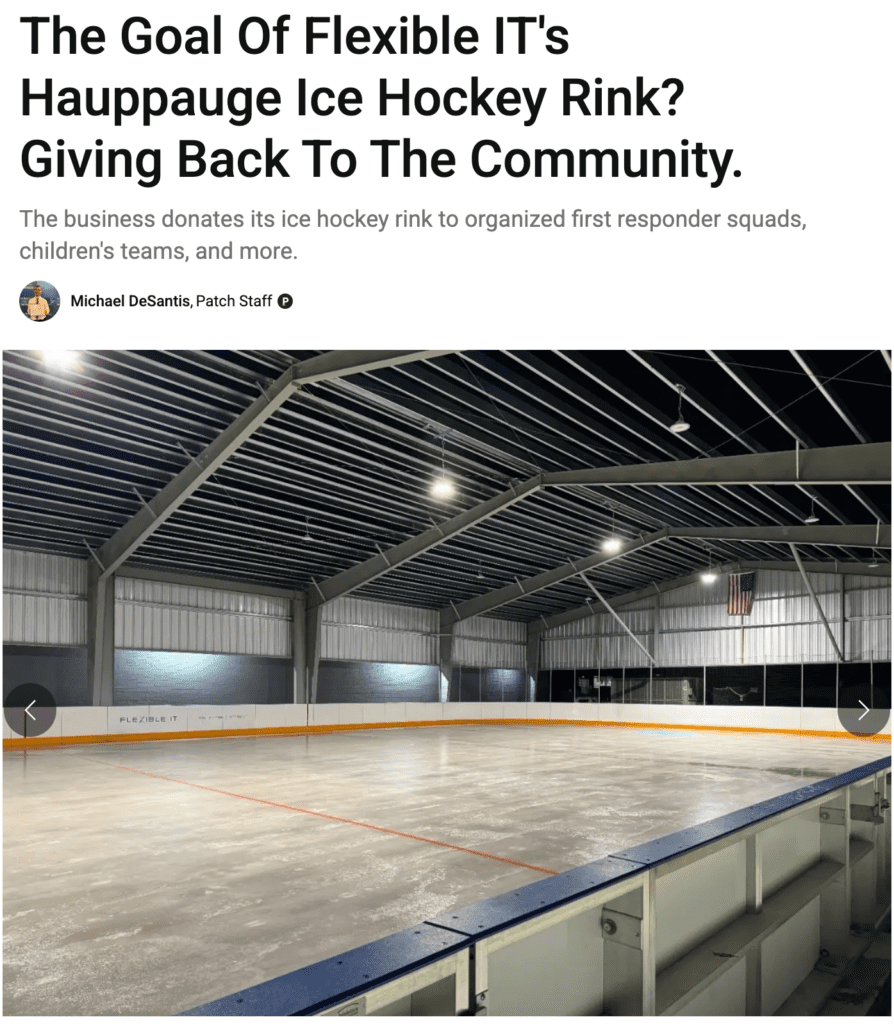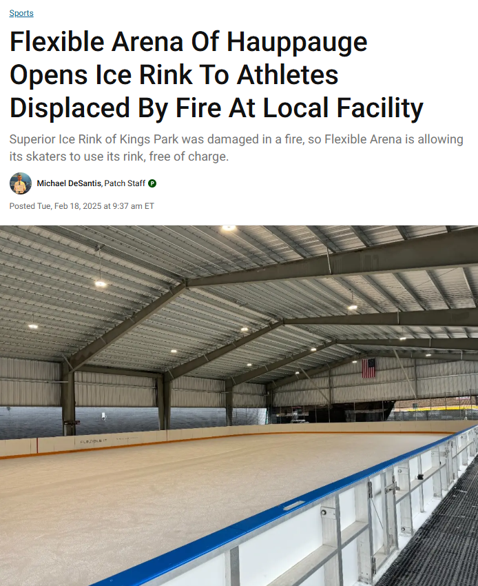Flexible Arena was featured in the Patch for its commitment to giving back to the Hauppauge community by providing a free, accessible space for youth hockey and local events. Read more…